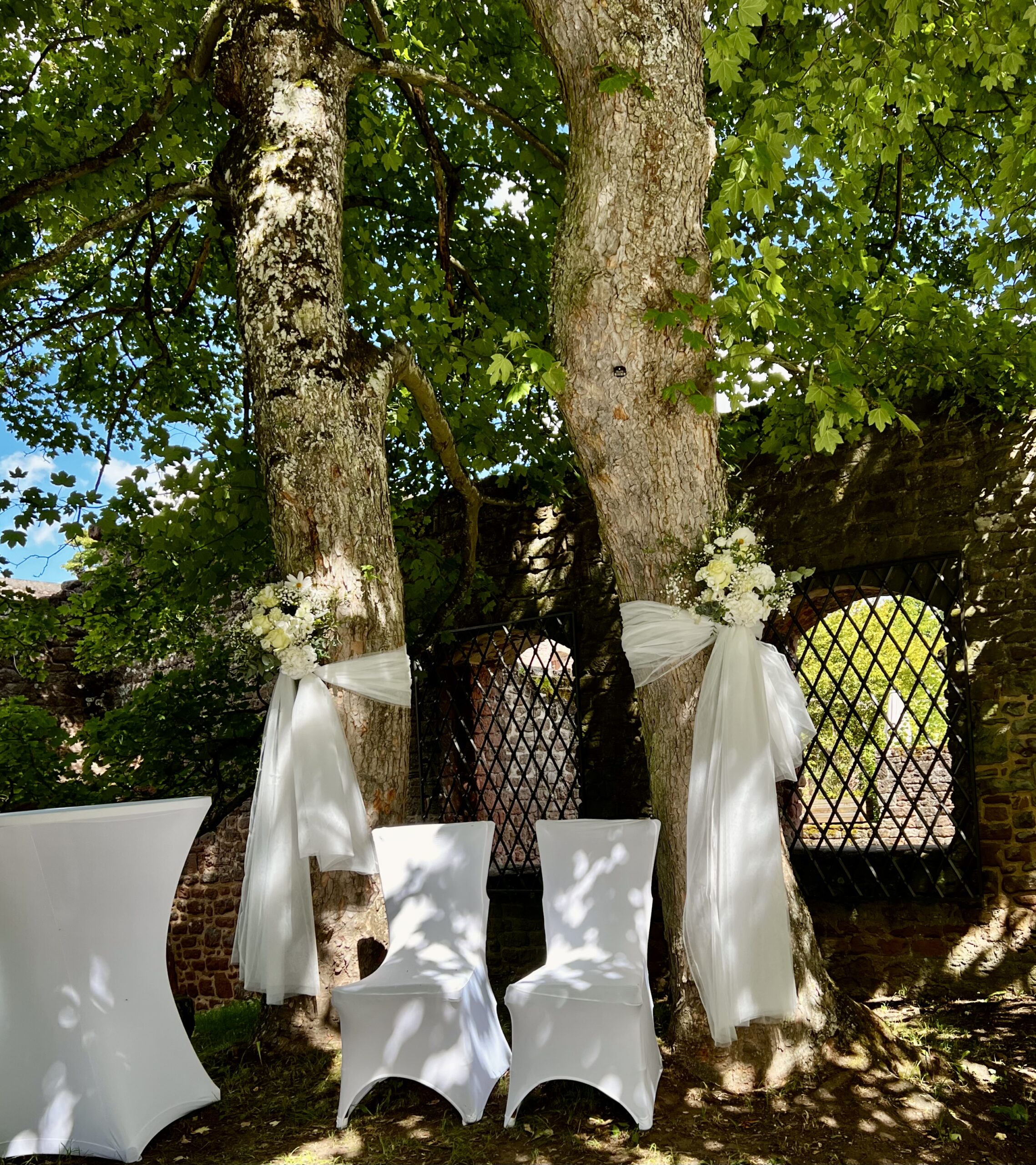 - Trau Set Up (bspw. Tisch mit Skirting/Stehtisch mit weißer Hussen, 2 Stühle mit weißen Hussen – nach Absprache)
