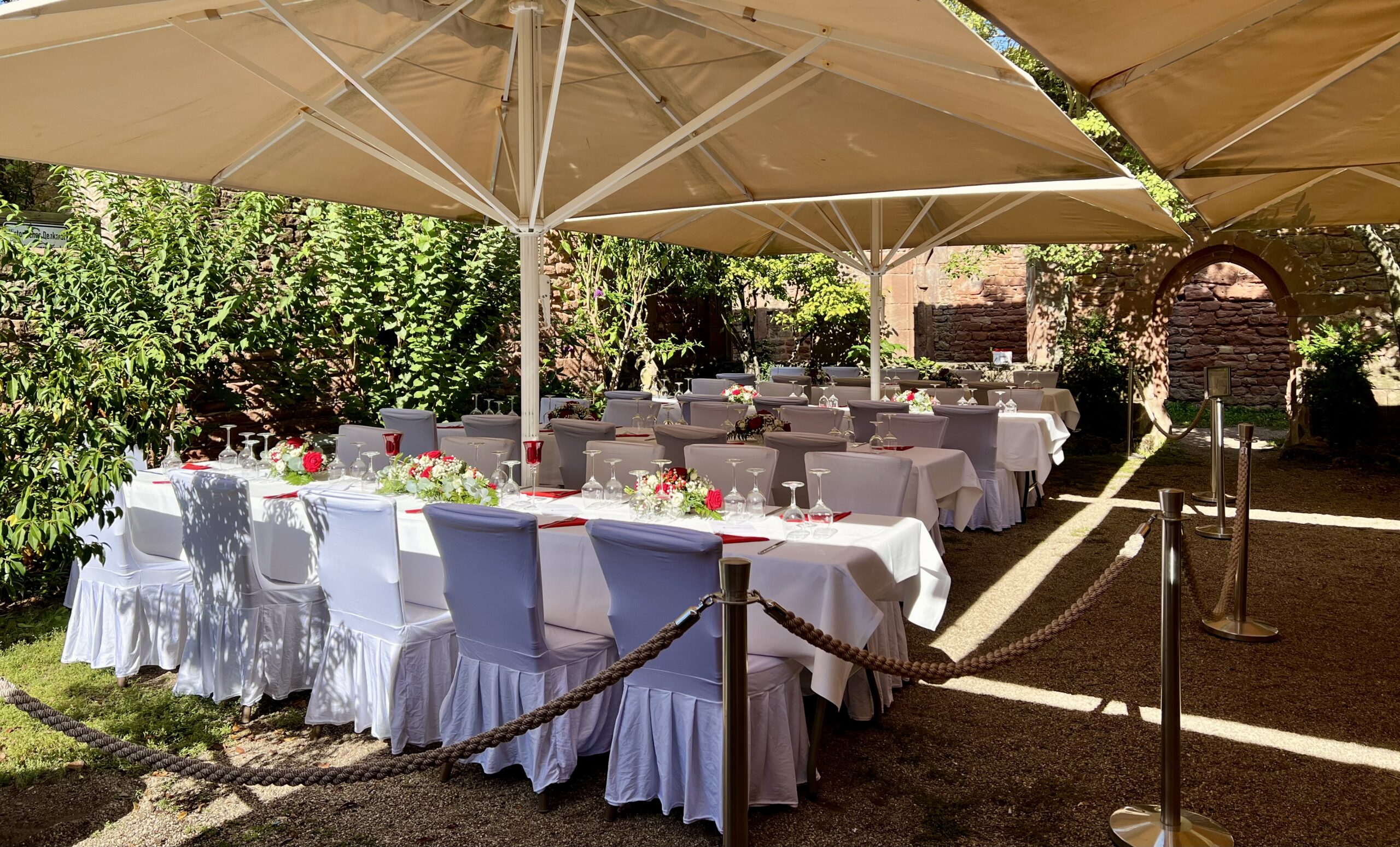 Selbstverständlich arrangieren wir Ihre Feier, bei schönem Wetter, im gleichen Umfang in unserem